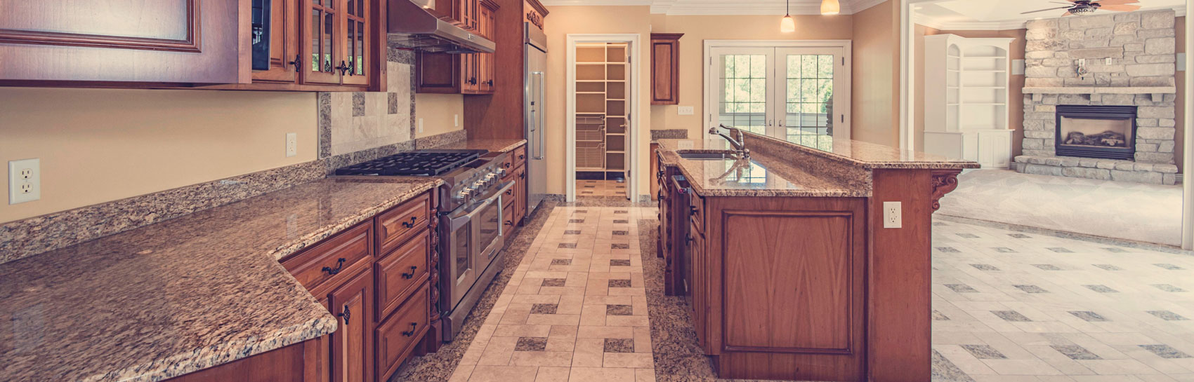 Cabinet, countertop, flooring, and appliance installation.